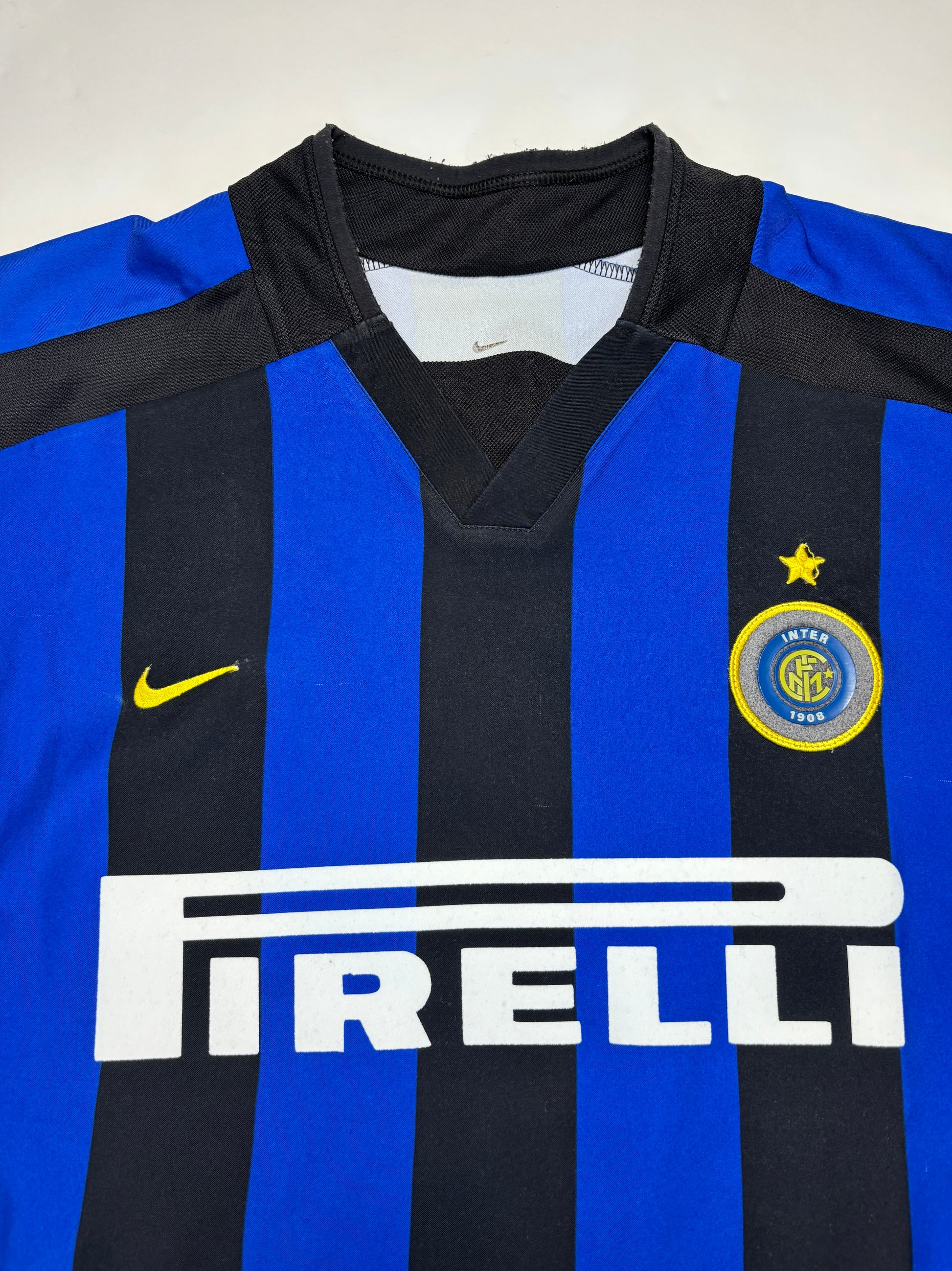 Inter Milan Home Shirt 2002/03 featuring Fabio Cannavaro. As worn during a season where he contributed significantly to Inter’s 2nd‑place finish in Serie A and deep Champions League run, forming Inter’s defensive core with Córdoba, Zanetti & Materazzi.